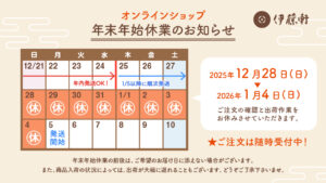 休業期間のご注文・問い合わせは、1月5日以降、順次対応させていただきます。