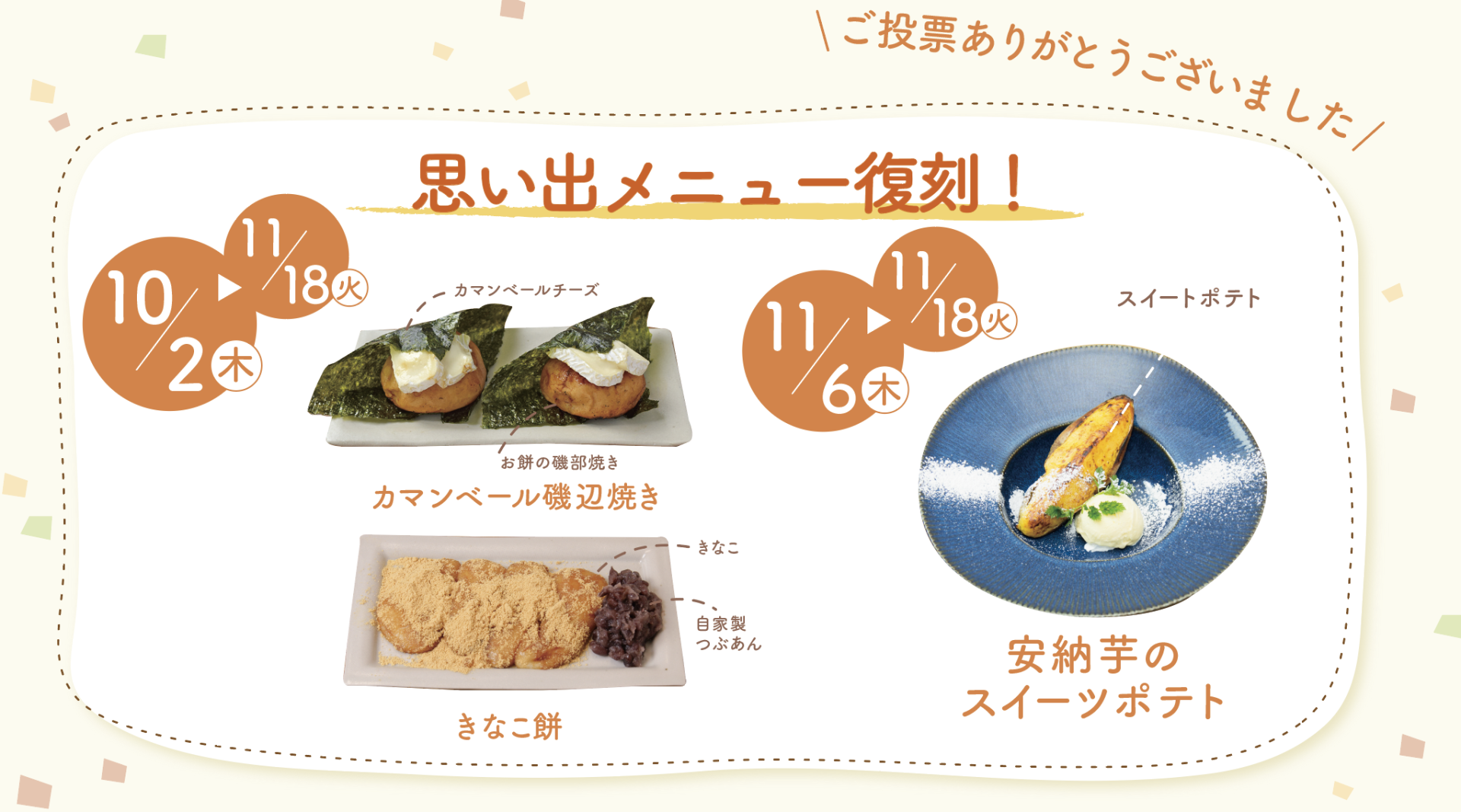 また、本店にご来店の皆さまにご投票いただいたカフェメニュー復刻投票も無事に終了いたしました。