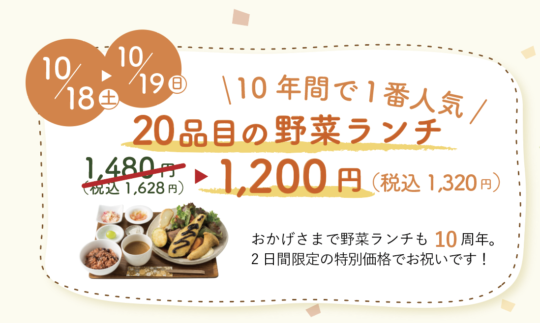 本店オープンから10年間、一番の人気商品「20品目の野菜ランチ」。