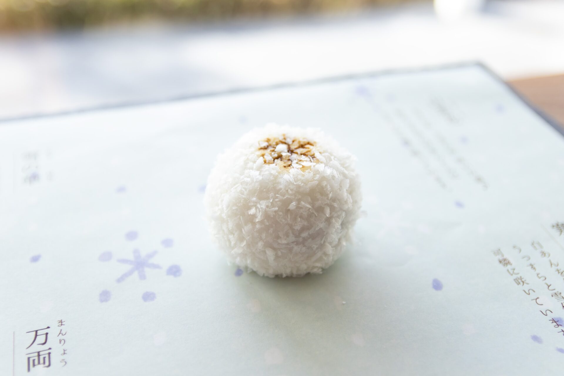 真っ白な薯蕷饅頭に氷餅の雪を降らせました。