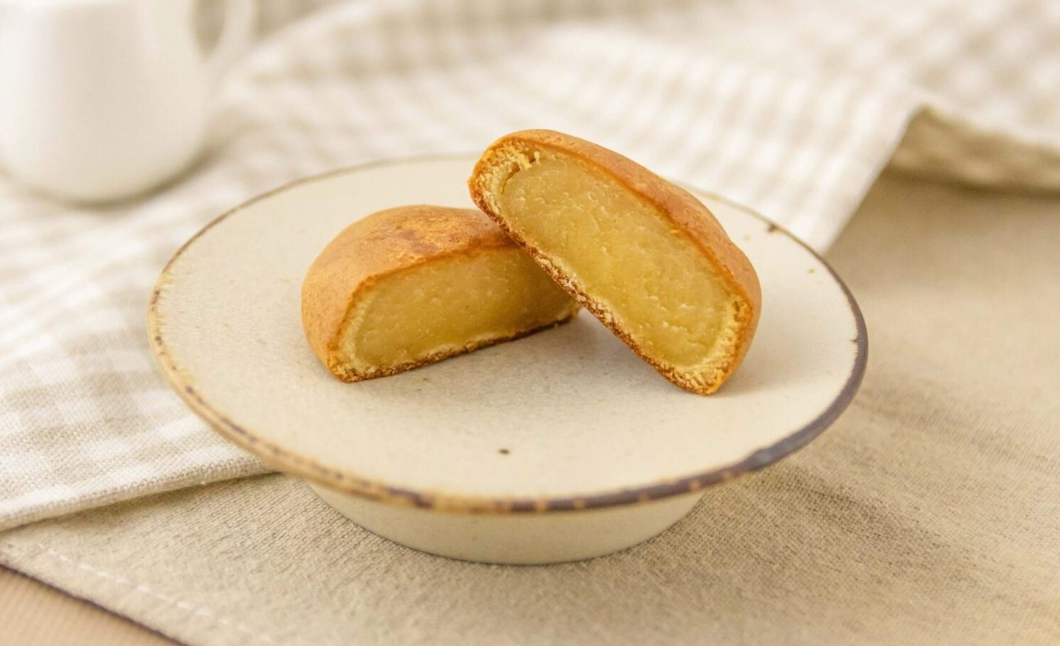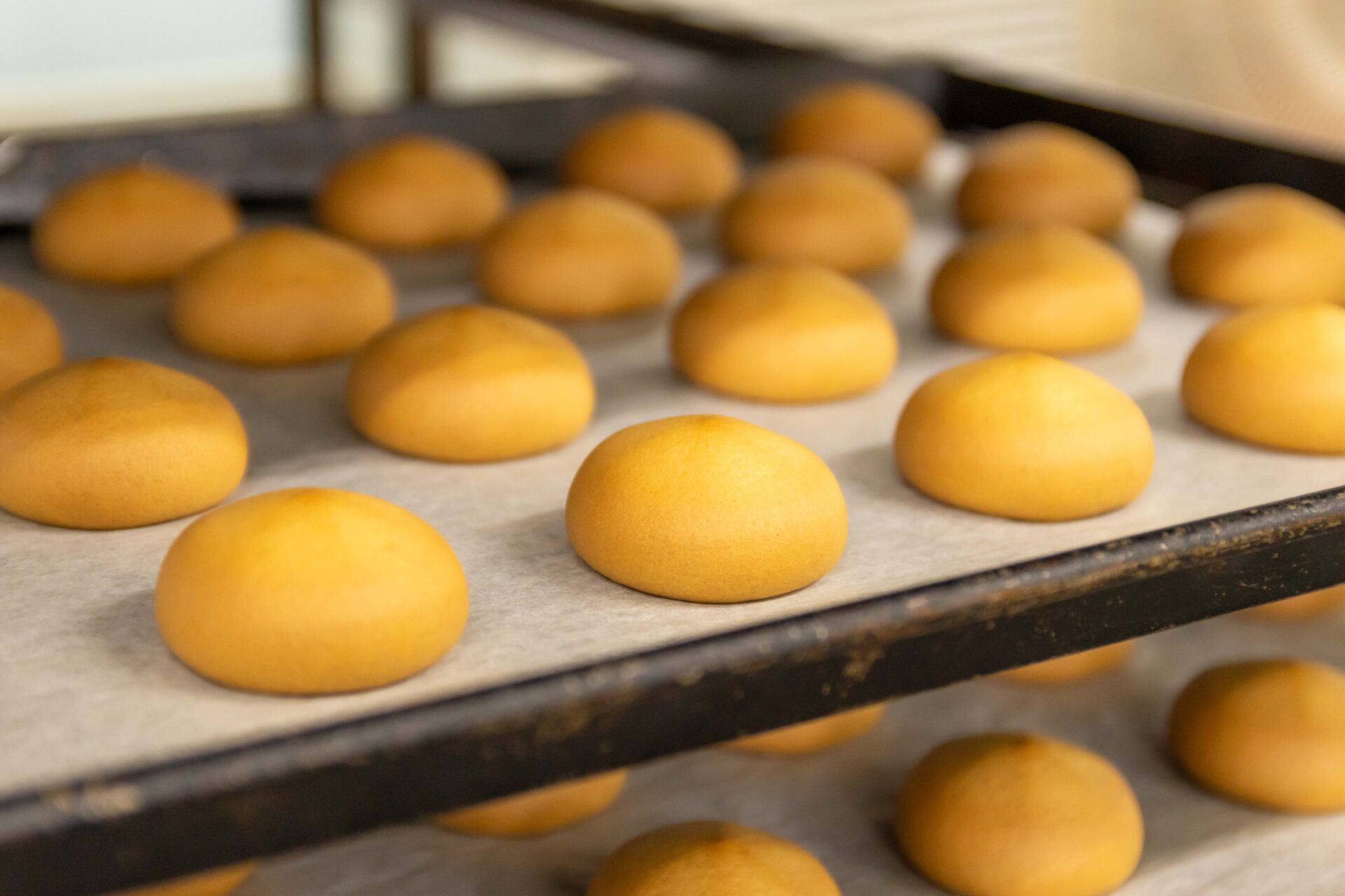 にゅうかは、特製の生地とはちみつが入った黄身あんから作られます。
